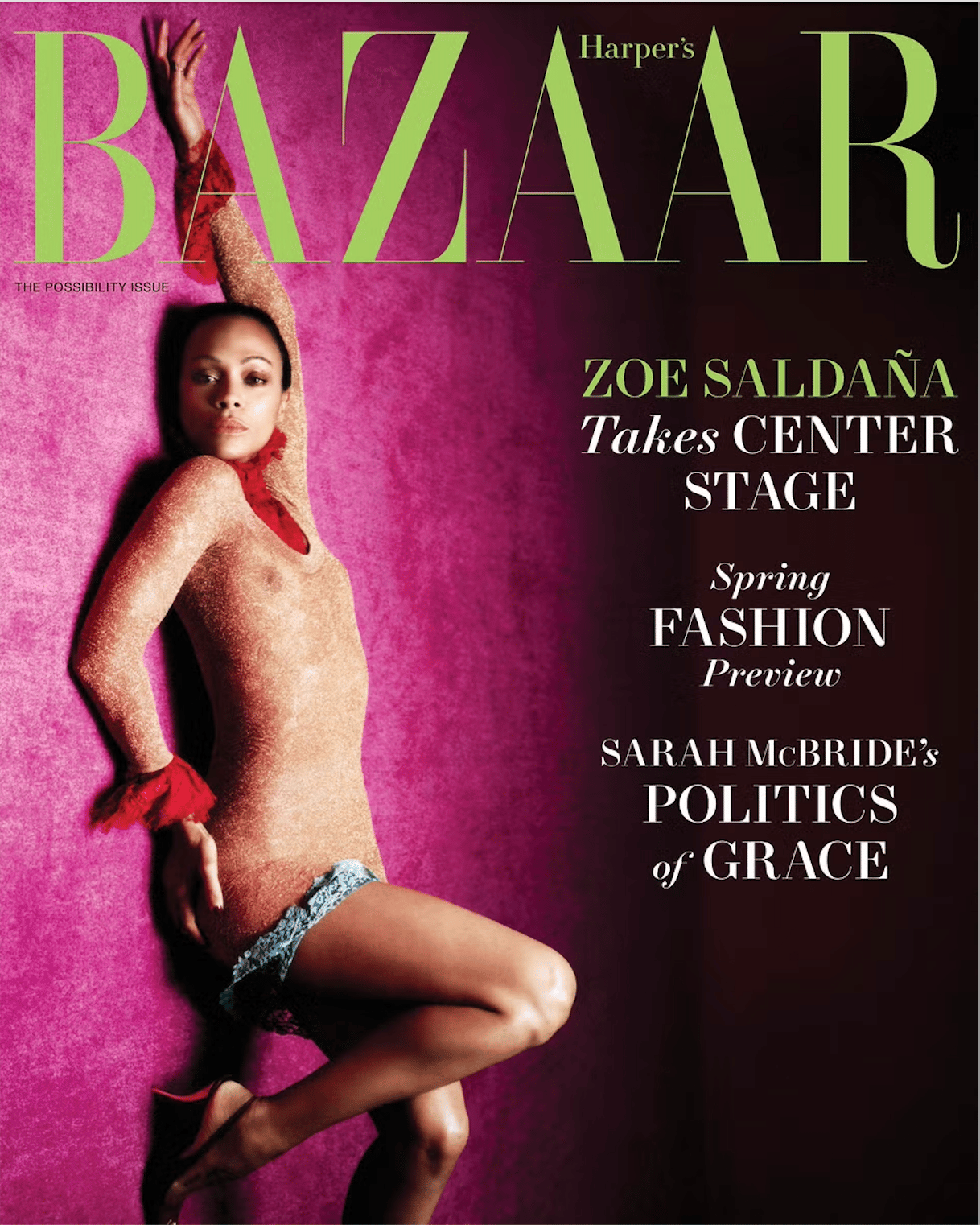 Liam: This cover is a little weird—yet sexy? The bold colour choices and Zoe’s pose give it a funky vibe I adore. It’s of those editorials that feel fresh and unexpected, making you stop to take a second look. The styling, the composition, the attitude—it all just works. I need to own a copy immediately!